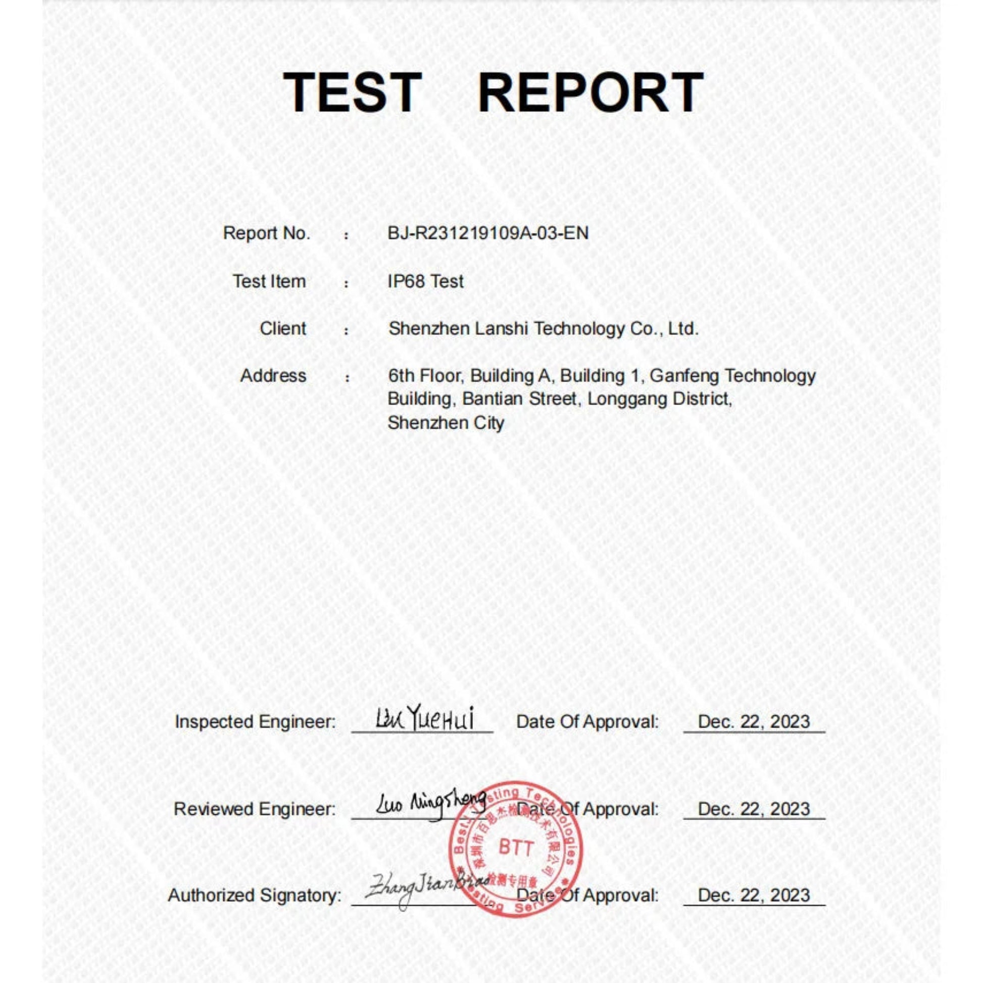 Waterproof Grade: Life Waterproof