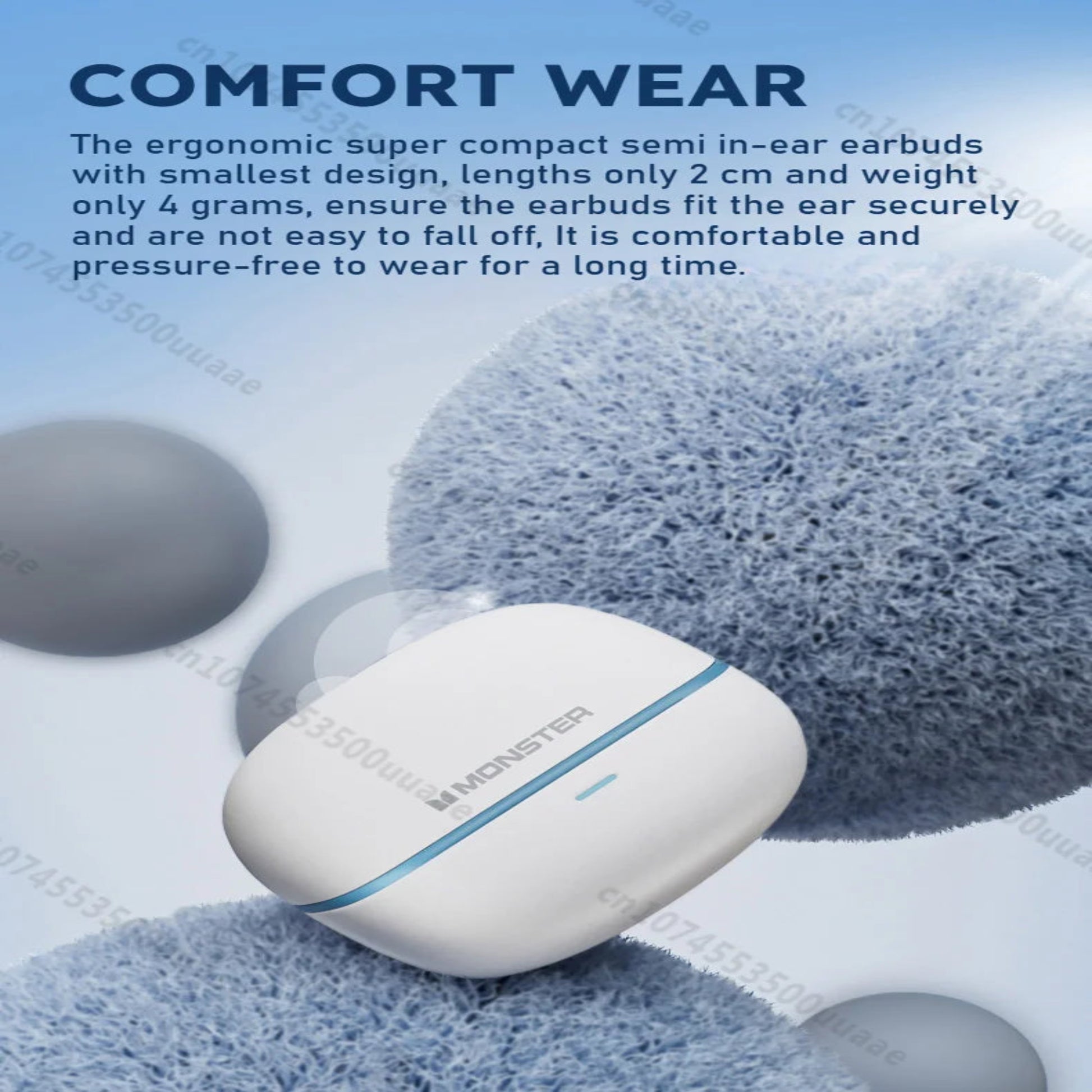 Monster AURA FIT GT19 Mini Invisible Earbuds Semi in-Ear Bluetooth Headphones